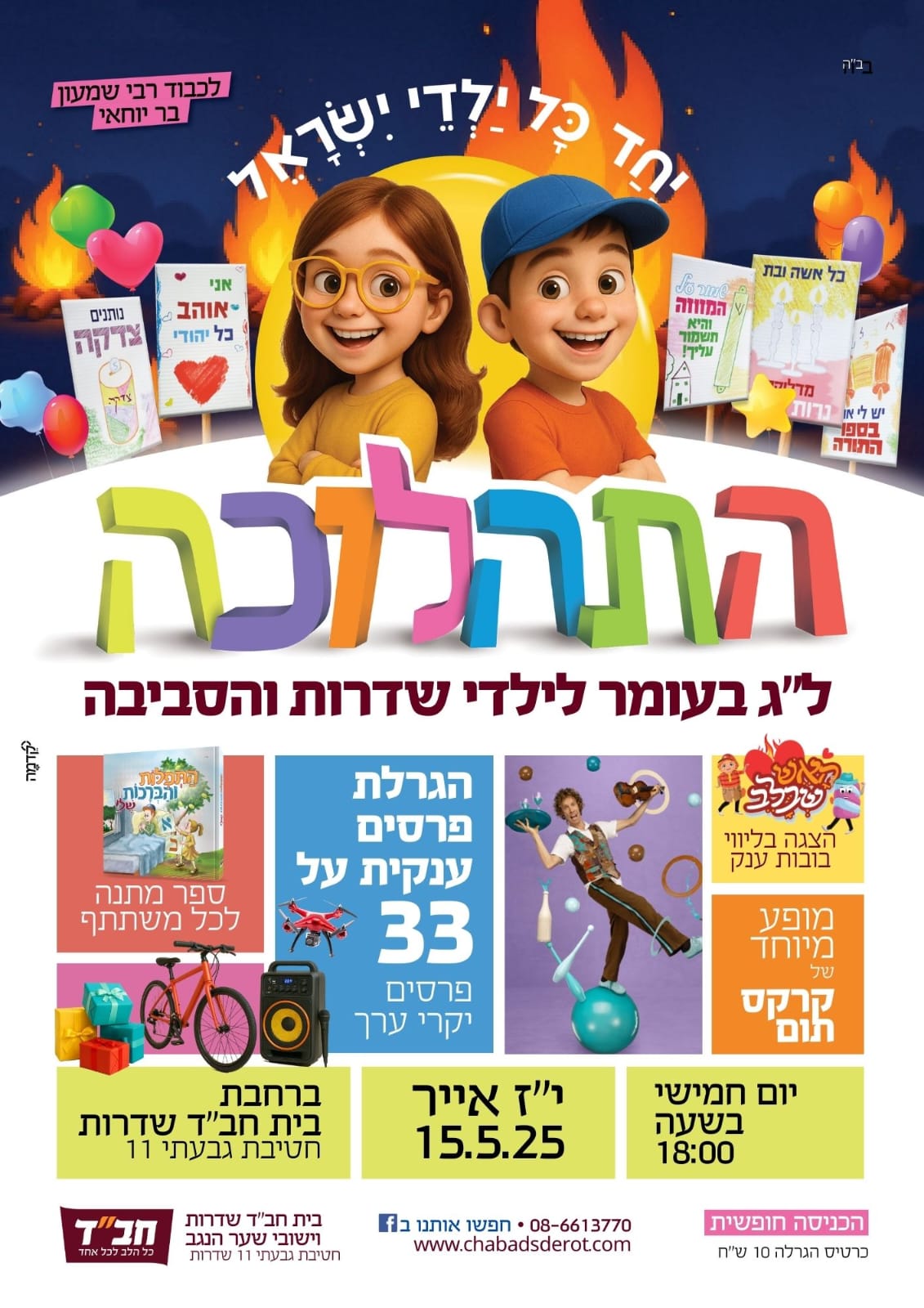 מעל 2,000 ילדים והורים השתתפו במעמד קריאת עשרת הדיברות ב20 מוקדים ברחבי העיר ובישובי שער הנגב שאורגנו ע"י בית חב"ד שדרות וישובי שער הנגב.
