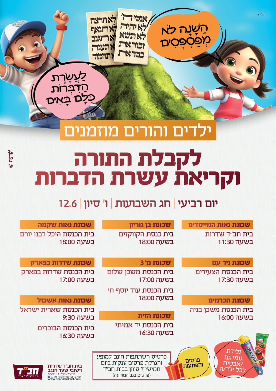 1,500 ילדים השתתפו בקריאות עשרת הדיברות ב11 מוקדים ברחבי העיר. ביום חמישי התקיים כנס המשך להופעה והגרלת פרסים בהשתתפות מאות רבות של ילדים. הכנס התקיים